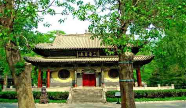 晋祠院内,现存最早的木构建筑是圣母殿。它创建于北宋天圣年间(公元1023--- 1032年),崇宁年间(公元1102-- 1106年)重修。殿为重檐歇山式,高19米,面宽7间,进深6间,平面呈正方形。殿身四周建有围廊,前廊进深两间,殿前檐曲线弧度很大,飞翘的殿角和飞梁下折的两翼互相映衬,加之殿基依山而筑,耸立晋水源头之上,给人开阔奇妙之感。大殿采用的营造方式是“减柱法”,殿内外共减十六,以廊柱和檐柱承托殿顶房架,使前廊和殿内更加宽敞。这说明宋代在建筑上已掌握了许多力学原理,堪称宋代殿宇中的代表。殴前廊柱上,雕有木质蟠龙8条,为宋元祐二年(1087年)太原府吕吉等人集资所雕,这是国内现存最早的木雕艺术品。
