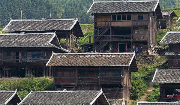 高寒山区的苗民过去多住“权权房”,即把带权木桩栽地作柱,圆木作檩子、椽子,用茅草或竹叶盖顶,四壁用树条或竹子编制,外表糊泥巴。房内用木条分隔成卧室、厨房,摆设简单。房屋前面或两侧盖一竹楼,用于堆放柴草和储存粮食,另盖畜厩紧靠住房。此外,尚有依树搭棚住房、岩洞住房,现在多为土墙草顶或石棉瓦顶的房屋。居住在坝区的苗族,住房多为土木结构的瓦房,内分三室,左右室各设一侧门,中室设正门。为避风,房屋多依山势而建。房屋开门不能朝向山垭口,不然家人会出事。开门也不能朝向孤山,否则易遭火灾。