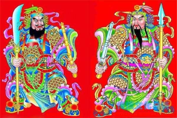古时所说的门,一般都是指的双扇门。两扇门,画两个神像,正好合适。过去一般的做法都是左边画神茶,右边画郁垒。但是传说中的神茶和郁垒究竟是什么样,谁也不清楚,所以又有人在神像的下方写上他们的名字。既然写了名字才能说明那两个神像的身份,发展到后来,有人便干脆只写名字了。这些都是过去所说的门神。